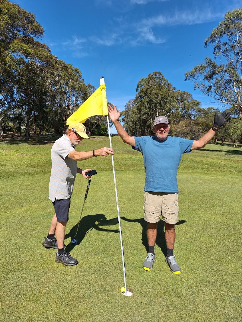 What a massive week it was at the club. Thursday saw a 19-strong field contest the 18-hole Stableford, with four members also playing their men’s singles knockout matches. Neil Henry (20) was simply sublime, winning his match 7/6 and taking out the day with a sensational 37 points. Peter Cambridge (15) finished just two points behind on 35, also claiming nearest to pin on the 17th. The biggest winner, though, was Peter Cook (14), whose perfect tee shot on the 4th went straight into the cup — unseen by his partners — to claim a full “Eagles Nest” of yellow Titleist balls. His ace contributed to a round of 33 points and a ball down the line.