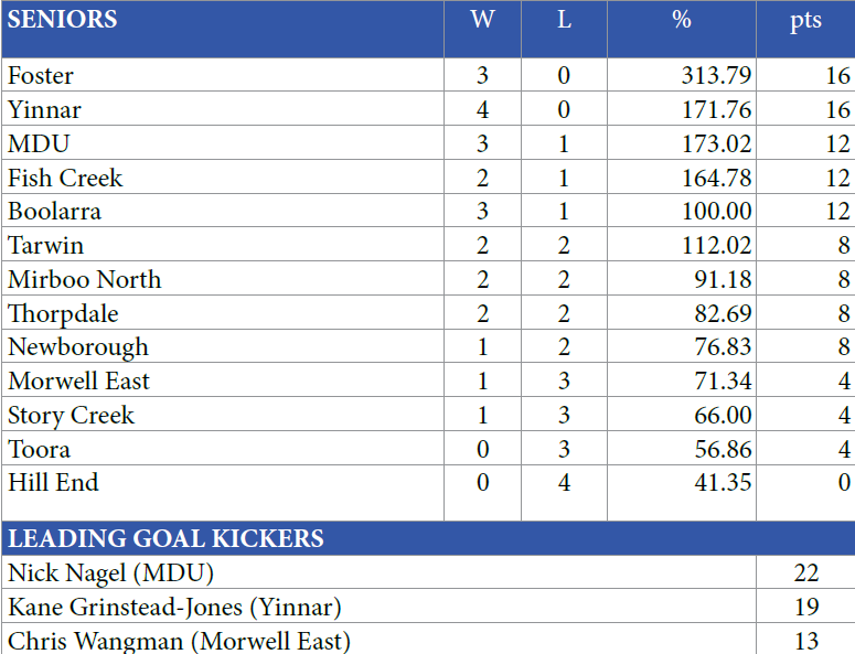 As tough as Toora can sometimes be on their home deck, the opposition don't come much tougher than what the Magpies faced on the weekend, in Fish Creek. The Kangaroos might not yet be playing at the level they plan to later in the season, but the quality of personnel means that they are a formidable opposition at any time of the year. Toora has already shown signs of significant improvement, even in losing. The Magpies still have a way to go, but the journey has started.