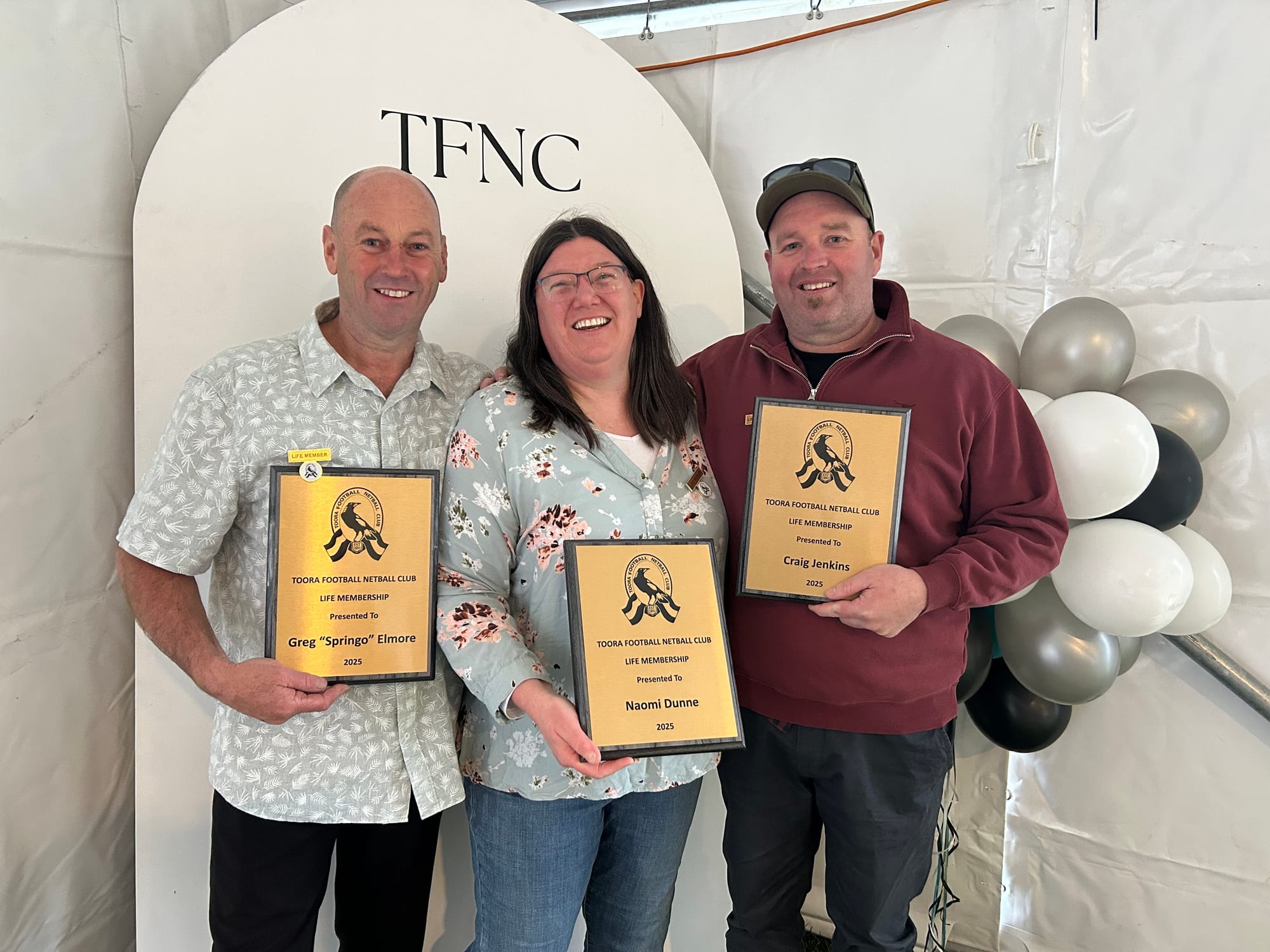 We awarded three new life members into the club; Naomi Dunne, Craig Jenkins and Greg 'Springo' Elmore. It was beautiful to see the emotion and sheer joy on all their faces and showed the true spirit they have for the Toora Football Netball Club!